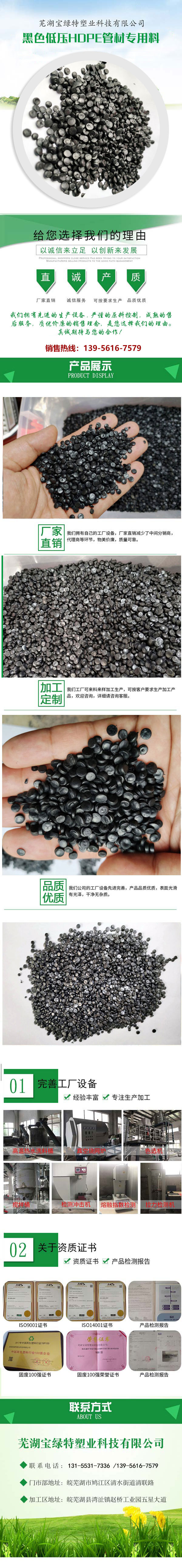 温州黑色低压HDPE管材专用料